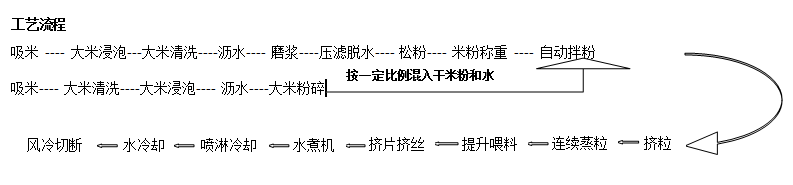 產(chǎn)品:以大米為主要原料,客戶可以根據(jù)需要選擇添加或者不添加部分淀粉,生產(chǎn)含水量為65%以上的鮮濕米粉。