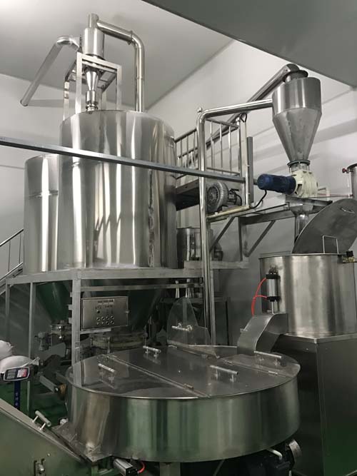 通過餳面機(jī)的不停攪拌使面團(tuán)中的水分更均勻,并自動(dòng)提升到下一工序, 設(shè)備可實(shí)現(xiàn)供料系統(tǒng)的自動(dòng)控制;