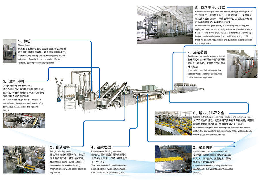 本設(shè)備適用于多種雜糧谷物,如玉米粉、蕎麥粉、大米粉、小麥粉等,生產(chǎn)混合谷物的非油炸方便面,無須更換設(shè)備,只需調(diào)整參數(shù),即可生產(chǎn)玉米方便面、蕎麥方便面、燕麥方便面以及具有不同地域特性的不同雜糧方便面產(chǎn)品。產(chǎn)品可煮可泡,食用方便,口感滑爽Q彈,沒有雜糧的粗糙口感,為廣大消費(fèi)者提供了即美味營養(yǎng)又方便的食品。滿足人們對食品營養(yǎng)、方便、美味的三大訴求。